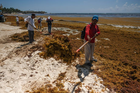 ▲ La llegada masiva de algas al Caribe mexicano redujo los niveles de ocupación hotelera en destinos como Cancún, Isla Mujeres y la Riviera Maya (imagen) durante la reciente temporada vacacional, según cifras de la Secretaría de Turismo. Experta de la UNAM explica que es un fenómeno provocado por el cambio climático, que hace que las algas lleguen en grandes cantidades a las costas, donde al descomponerse emiten mal olor y gases que causan daños a la salud. Foto Cuartoscuro