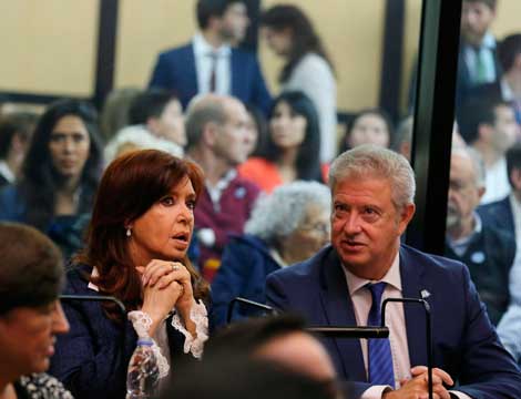 ▲ La ex presidenta de Argentina escucha las imputaciones en un tribunal de Buenos Aires. La ex mandataria fue acusada, al igual que 12 ex funcionarios y empresarios, de encabezar una