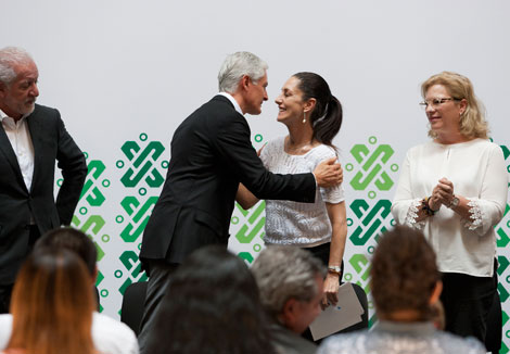 ▲ Claudia Sheinbaum, jefa de Gobierno de la Ciudad de México; Alfredo del Mazo, mandatario del estado de México, y Josefa González Blanco, secretaria del Medio Ambiente y Recursos Naturales, acudieron a la presentación realizada por la Came del nuevo programa de contingencias para la zona metropolitana del valle de México. Foto Cristina Rodríguez