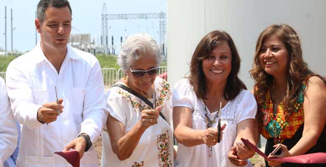▲ El gobernador Alejandro Murat y la secretaria de Energía, Rocío Nahle (de blusa blanca), participaron en el corte de listón de la obra, la cual tuvo una inversión superior a mil 200 millones de pesos. La planta se halla en la región del Istmo y cuenta con dos subestaciones. El mandatario destacó que este proyecto es el más grande de América Latina. Foto Jorge A. Pérez
