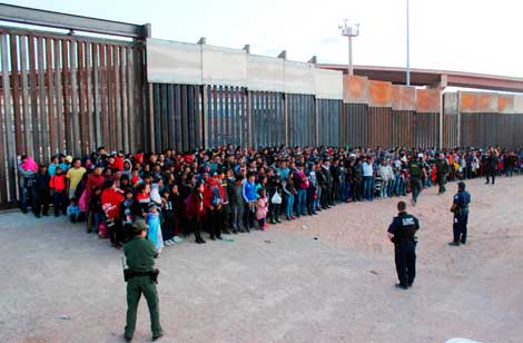 ▲ Más de un millar de migrantes cruzaron juntos hacia El Paso, Texas, la madrugada del miércoles, informaron este jueves autoridades estadunidenses. La Oficina de Aduanas y Protección Fronteriza informó que el grupo, el más grande que se ha registrado, tardó casi cinco minutos en pasar por debajo de una valla de alambre, lo cual quedó registrado en un video que compartió el presidente Donald Trump. Entre los indocumentados iban 63 niños sin compañía de un adulto, 934 como familia y 39 personas mayores solas. Foto Ap