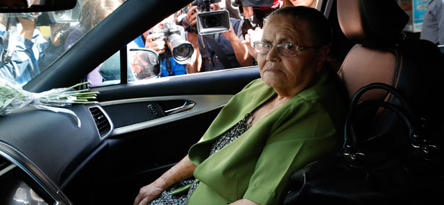 ▲ María Consuelo Loera Pérez dijo que ella y sus dos hijas obtuvieron los documentos para ir a Estados Unidos y visitar al capo en la cárcel; agradeció al presidente Andrés Manuel López Obrador y a la embajada estadunidense por el permiso. El último día de diciembre de 2015, la madre del ex líder del cártel de Sinaloa recibió a La Jornada en su casa. Entonces creía firmemente que no era voluntad de Dios que su hijo estuviera en la cárcel, por lo que le ponía los medios para que saliera; días después fuerzas federales lo capturaron por tercera ocasión. La imagen, a su salida de la embajada. Foto Ap