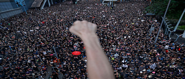 ▲ La nueva movilización, estimada en 2 millones de participantes, contra el controvertido proyecto de ley para autorizar extradiciones a China continental, obligó a la gobernante, Carrie Lam, a ofrecer disculpas y a reconocer defi ciencias en su gobierno, los cuales propiciaron conflictos sociales. El sábado pasado ya había anunciado la suspensión de la polémica enmienda. Foto Ap.