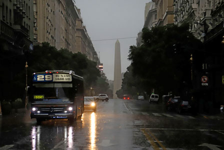 ▲ La suspensión masiva de energía eléctrica provocó el colapso en los servicios de las principales ciudades de Argentina y Uruguay. En Buenos Aires (imagen), el apagón afectó al sistema de distribución de agua y la red de semáforos. Los aeropuertos funcionaron durante horas mediante generadores, pero los servicios de trenes y Metro fueron interrumpidos. Foto Afp