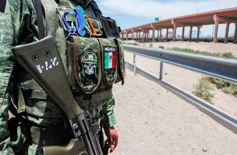 ▲ Militares, agentes de migración y de fuerzas de seguridad de Chihuahua, así como integrantes de la Gendarmería y de la Policía Federal, iniciaron ayer en Ciudad Juárez labores de seguridad en las zonas que más utilizan los migrantes para cruzar a El Paso, Texas, y solicitar asilo. A los extranjeros que han sido devueltos por el gobierno de Estados Unidos se les concede un permiso por 180 días para permanecer en México, el cual deberán renovar hasta concluir su trámite migratorio en el vecino país. Foto Afp