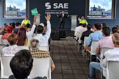 ▲ Ayer, el Servicio de Administración y Enajenación de Bienes, que pronto se transformará en el Instituto para Devolver al Pueblo lo Robado, puso en subasta en el Centro Cultural Los Pinos 27 inmuebles que fueron propiedad del narcotráfi co. Pese a que los presentadores señalaban que los bienes estaban en paraísos mexicanos, muchos de éstos no atrajeron a los compradores. Foto Marco Peláez