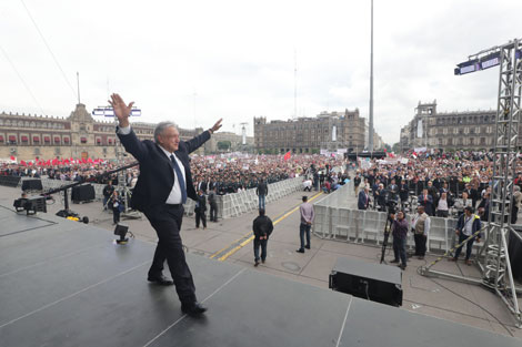 ▲ Ante miles de simpatizantes en el Zócalo, el presidente Andrés Manuel López Obrador resaltó que se siente optimista para consolidar este año las bases de la transformación del país y acabar de arrancar de raíz al régimen corrupto. Reiteró que hay un déficit en seguridad, porque todavía se mantienen los niveles de violencia que heredamos del antiguo régimen. Foto Carlos Ramos Mamahua/ Presidencia