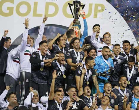 ▲ La selección mexicana logró su octavo título en el certamen con una jugada que inició Rodolfo Pizarro, quien cedió el balón a Raúl Jiménez y éste lo pasó de taquito a Jonathan dos Santos para concretar el gol al minuto 73. Fue un partido en el cual el conjunto nacional tardó en entrar en ritmo; la escuadra de las barras y las estrellas desperdició algunas oportunidades para anotar. Foto Afp