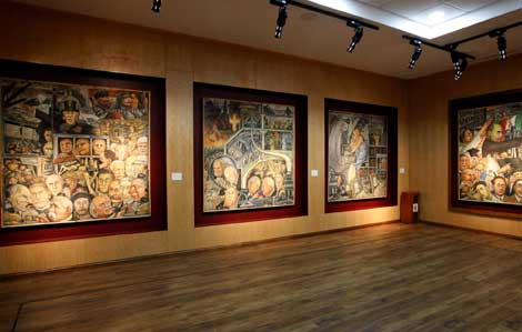 ▲ La muestra de 17 obras de arte que fueron adquiridas con recursos del SNTE durante la gestión de Elba Esther Gordillo fue inaugurada en el Centro Cultural del México Contemporáneo. Alfonso Cepeda Salas, actual dirigente de esa organización magisterial, dijo que las piezas serán expuestas de manera permanente y gratuita. Destacan cinco de 25 paneles creados por Diego Rivera (imagen), los cuales se consideraron el primer mural móvil del planeta. Sus temáticas son la primera Guerra Mundial y la lucha obrera. Foto Roberto García Ortiz