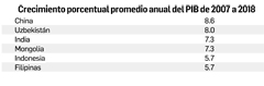 Otra comparación con diversas naciones en cuanto al crecimiento económico rápido durante los pasados 12 años es el siguiente: