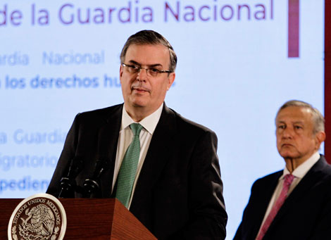 ▲ El flujo de indocumentados se redujo 56 por ciento de junio a la fecha, informó el canciller Marcelo Ebrard durante la conferencia mañanera del presidente Andrés Manuel López Obrador. Dijo no esperar que haya una amenaza de imponer aranceles el próximo martes, cuando acudirá a Washington a la evaluación del acuerdo firmado con Estados Unidos el 7 de junio. En tanto. el Ejecutivo celebró la acción de la diplomacia y ratificó que quiere una relación de amistad con el vecino del norte. Foto Notimex