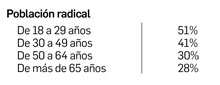 De acuerdo con una encuesta de Gallup, publicada por la cadena periodística inglesa BBC, la población joven es más radical y demuestra una mayor visión positiva sobre el socialismo. Los datos de la encuesta son los siguientes