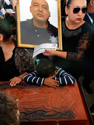 ▲ Durante el homenaje en Morelia a los 13 policías de Michoacán asesinados el lunes en una emboscada en Aguililla, familiares de las víctimas increparon al gobernador Silvano Aureoles por enviar sin suficiente preparación y mal armados a los agentes. El mandatario llamó al presidente Andrés Manuel López Obrador a enfrentar juntos, con toda la determinación del Estado, a los grupos delincuenciales. Horas antes, el Presidente lamentó los hechos y dijo que apoyará a las autoridades estatales. Foto Ap.