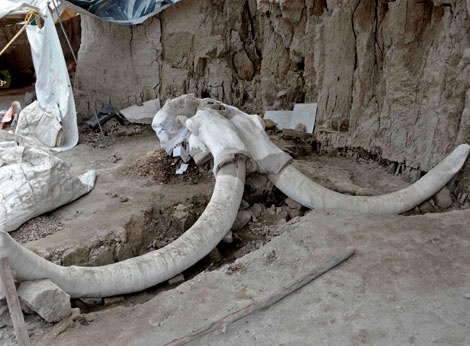 Investigadores del Instituto Nacional de Antropología e Historia informaron del histórico descubrimiento en el poblado de San Antonio Xahuento, en Tultepec. Señalaron que fueron rescatados 824 huesos de al menos 14 ejemplares, lo que confirma que hace más de 14 mil años hubo presencia de grupos humanos en el continente americano, los cuales de manera organizada cazaban a esos animales. Es un parteaguas en la prehistoria de la región, puntualizaron. Foto Afp.