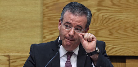 ▲ Alejandro Díaz de León, gobernador del BdeM, presentó ayer el informe sobre la economía correspondiente al tercer trimestre del año. Es la primera vez, desde la crisis de 2009, que la institución coloca su estimado de crecimiento por abajo de cero. Foto Marco Peláez