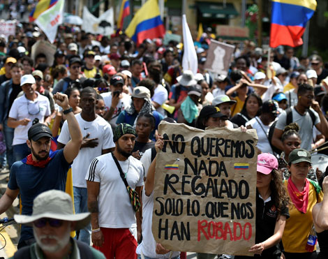 ▲ Miles de personas volvieron a marchar en las principales urbes en apoyo a la jornada de huelga convocada por el Comité de Paro. En Bogotá varias movilizaciones confluyeron en la céntrica Plaza de Bolívar. El país sudamericano suma ya 12 días de protestas desde que se realizó el primer paro nacional el 21 de noviembre en demanda de mejoras sociales y seguridad. Los enfrentamientos con las fuerzas de seguridad han causado cuatro muertos y decenas de detenidos. La imagen corresponde a Cali. Foto Afp. / Agencias