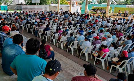 ▲ En la consulta ciudadana sobre el Tren Maya en cinco estados del sureste, las comunidades indígenas se manifestaron en favor, pero bajo ciertas condiciones. Demandaron que se respete el medio ambiente, se construyan carreteras y que haya servicios básicos como agua potable, electricidad y drenaje, así como apoyo a proyectos productivos. La imagen es en Champotón, Campeche. Foto Afp