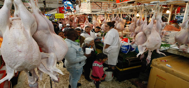 ▲ Las aglomeraciones fueron la tónica en los principales centros de abasto capitalinos. En las cajas registradoras hubo largas filas con carritos repletos de viandas o regalos. El mercado de La Merced (en la imagen) fue uno de los más socorridos para hallar el pavo. A diferencia de otros años, los precios de productos más buscados no registraron alzas desmedidas. Foto Roberto García Ortiz. Mirna Servín