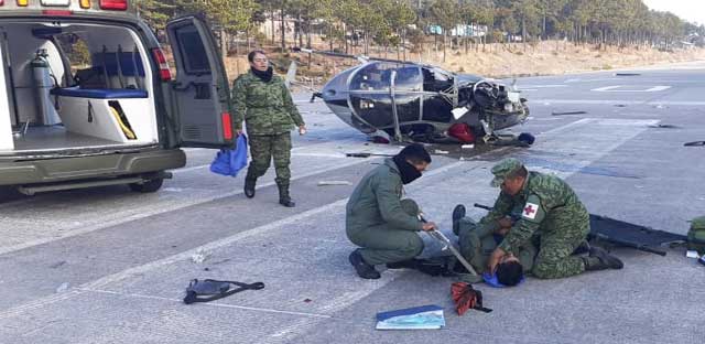 ▲ La aeronave cayó a tierra cuando intentaba aterrizar en una pista localizada en el municipio de Guadalupe y Calvo, Chihuahua. Los soldados regresaban de Badiraguato, Sinaloa, donde realizaron labores de apoyo en la erradicación de enervantes. Los lesionados fueron trasladados al Hospital Militar Regional de Mazatlán. Una comisión investigadora de la Secretaría de la Defensa Nacional comenzó los peritajes para determinar las causas del accidente. Foto Sedena. Eduardo Murillo
