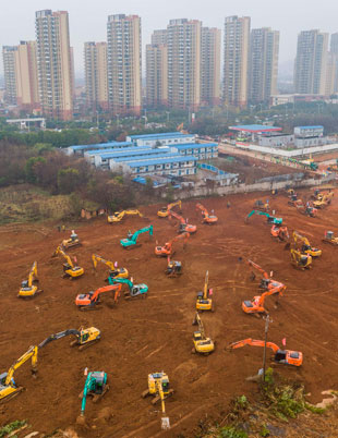 Autoridades construyen en Wuhan un hospital (imagen) para recibir –a partir del 3 de febrero– a mil pacientes afectados por el coronavirus, mientras habitantes de 13 ciudades fueron aislados y a partir de hoy cerrarán grandes atracciones para evitar más contagios, como la Ciudad Prohibida de Pekín, el parque de Disneylandia y una sección de la Gran Muralla Foto Afp