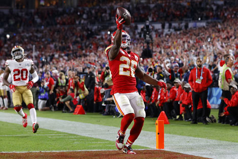 ▲ Damien Williams, quien anotó dos veces para Kansas City, corrió 38 yardas para cruzar las diagonales y fulminar cualquier aspiración de San Francisco en el último cuarto. Andy Reid, entrenador de los Jefes, señaló que la gran temporada de su equipo tomó vuelo en el juego en el estadio Azteca contra San Diego.