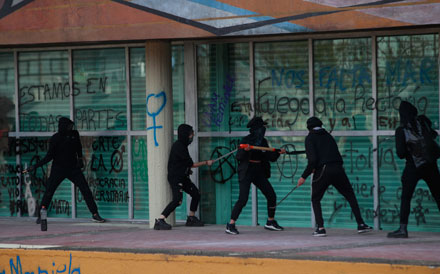 Tras marcha contra la violencia de género, encapuchados vandalizan el edificio de Rectoría