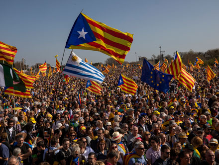 lucha definitivapara alcanzar la independencia, sin aludir al diálogo de hace unos días con el gobierno español del socialista Pedro Sánchez, con el propósito de buscar solución al conflicto suscitado el 27 de octubre de 2017, cuando el movimiento independentista, encabezado por él, declaró unilateralmente la secesión, lo que lo llevó al exilio en Bélgica, donde está asilado pese a tener inmunidad por ser eurodiputado. Foto Ap / Armando G. Tejeda, corresponsal