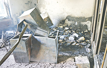 ▲ Un grupo ingresó en las instalaciones de la facultad y provocó el siniestro con bombas molotov, petardos y gasolina en la oficina de la Unidad Jurídica, ubicada en el primer piso del edificio de gobierno; otras áreas también resultaron dañadas y se reportan dos lesionados, indicaron autoridades. La UNAM informó que se presentaron dos denuncias ante las fiscalías General de la República y General de Justicia del Estado de México. Se ha identificado, hasta el momento, a dos agresores. Foto FES Acatlán. José Antonio Román
