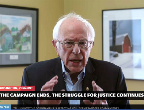 ▲ Mediante una videoconferencia desde Vermont, Bernie Sanders anunció la suspensión de su campaña por la candidatura demócrata a la presidencia de Estados Unidos. Aseguró que apoyará a Joe Biden para derrotar a Donald Trump.