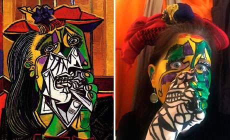 Como artista siempre es bueno participar en movimientos que se producen en la sociedad. El brote de Covid-19 desata otras pandemias, entre ellas la falta de empleo y dinero de mucha gente. Entonces, con gran número de artistas, gestionamos que haya una ayuda para unos 100 mil creadores y gestores culturales, expresa el pintor Antonio Ortiz Gritón. En la imagen de la izquierda, Mujer que llora, obra de Pablo Picasso, recreada por la ucraniana Katrusya Kosilkova para la página de Facebook Izoizolyacia, como parte del ejercicio creativo emprendido en medio del encierro. También ciudadanos rusos residentes en su país y en el extranjero recrean obras clásicas en fotos. Fotos Ap. / Ericka Montaño Garfias y Juan Ibarra
