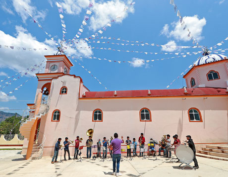▲ Al ritmo de La San Marqueña, niños mixtecos del poblado Santos Reyes Zochiquilazala, en el municipio de Santiago Juxtlahuaca, Oaxaca, hacen frente a la fase tres de la pandemia del coronavirus, cuando las clases presenciales están suspendidas en todo el país, con previsión de la Secretaría de Educación Pública de reanudarlas el primero de junio. Foto Notimex