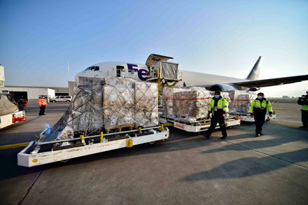 ▲ Una nave de la empresa FedEx aterrizó ayer en el Aeropuerto Internacional de Toluca con los ventiladores mecánicos, los cuales se han vuelto equipos esenciales en la atención de pacientes críticos de coronavirus. Es el primero de seis embarques previstos en el acuerdo entre los gobiernos de México y Estados Unidos para la compra de insumos en la lucha contra la pandemia. Foto Presidencia