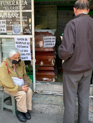 ▲ Propietarios de establecimientos de ese género cercanos al Hospital General de México han puesto diversos letreros para la atención de deudos. En los casos de fallecimientos por coronavirus, las autoridades capitalinas emitieron recientemente un protocolo para el manejo de cuerpos y recomendaron a familiares abstenerse de las honras fúnebres para evitar contagios. Foto José Antonio López