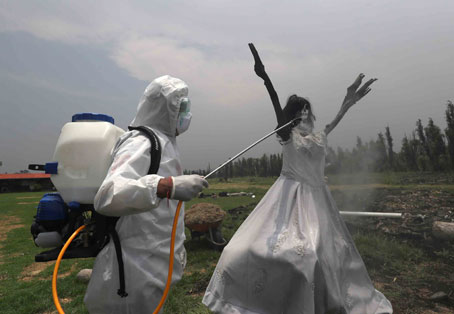▲ Las autoridades de esa demarcación han efectuado esa labor en la zona chinampera, como en el islote Tlilac, donde se realiza la representación de La Llorona durante la celebración del Día de Muertos, en noviembre. Las labores de limpieza ante la pandemia de coronavirus se han ampliado a panteones y las diferentes rutas de transporte público. Foto Yazmín Ortega Cortés