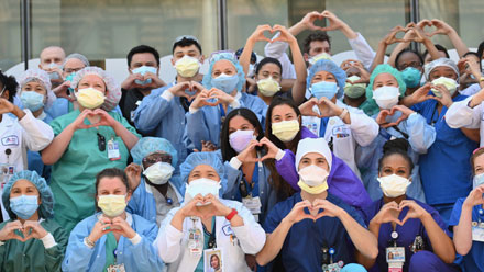 Gobiernos, organizaciones internacionales y ciudadanos se sumaron ayer a los festejos de ese cuerpo de salud por su día, y elogiaron su labor ante la pandemia del coronavirus. António Guterres, secretario general de la ONU, señaló que los y las enfermeras son insustituibles. En México se informó que Fabiana Zepeda, conocida como La Jefa, encargada de la División de Programas de Enfermería del IMSS, dio positivo al Covid y se halla en aislamiento. La imagen es en el hospital Monte Sinaí, en NuevaYork. Foto Afp.