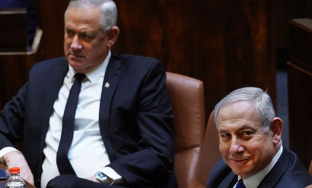 ▲ Ayer asumió el gobierno de unión encabezado por Benjamin Netanyahu (derecha, en la imagen) y Benny Gantz tras recibir el voto de confianza del Parlamento, después de tres elecciones en las que no hubo vencedor. El primer ministro aún enfrentará un juicio a partir de la próxima semana por acusaciones de corrupción. La decisión de compartir el poder abre el camino para que Netanyahu proceda hacia la prometida anexión de partes de la ocupada Cisjordania. Foto Afp. Agencias