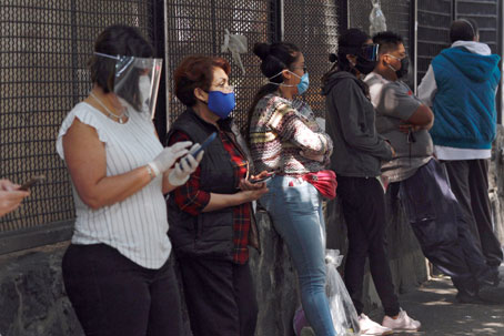 ▲ Largas esperas realizan familiares de pacientes con coronavirus para obtener información en el Hospital 20 de Noviembre del Issste. En tanto, el Insabi dio inicio a la entrega de mil 68 camas para 14 estados, de las cuales 140 son de terapia intensiva. En la Ciudad de México comenzó a operar el centro de atención temporal del Hospital General de Zona 24 del IMSS. Foto Cristina Rodríguez