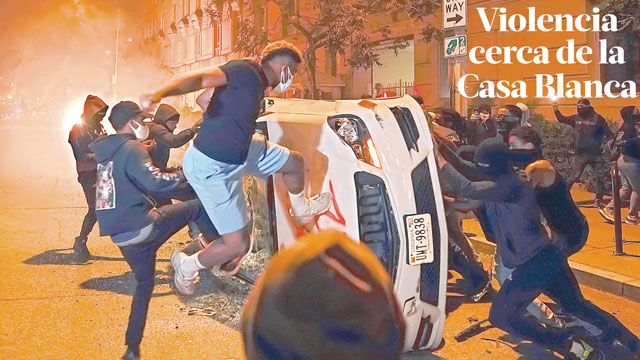 ▲ La ola de manifestaciones por la muerte del afroestadunidense George Floyd en un violento arresto policiaco en Minneapolis, Minnesota, el pasado lunes, prosiguió a pesar del despliegue de la Guardia Nacional en por lo menos 14 estados y la aplicación del toque de queda en 25 ciudades. En Washington, la capital, los inconformes llegaron cerca de la Casa Blanca, donde se incrementó el nivel de seguridad. Por la noche se desataron actos vandálicos (imagen). Foto Ap