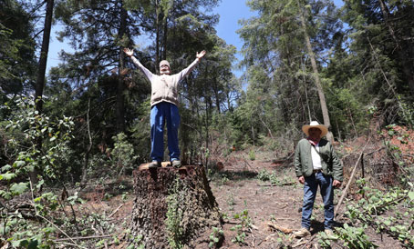 ▲ Comuneros de la alcaldía denuncian que falta voluntad política de la Comisión de Recursos Naturales (Corena) y autoridades federales para poner freno a este ilícito. Señalan que forman parte de las brigadas de protección del bosque, pero exponen que en los recientes meses la vigilancia se relajó por la pandemia del Covid-19. En parajes alejados sigue el ingreso de grupos armados para talar oyameles de 30 metros de altura. Narran que en pleno día se observan camiones cargados de madera. Foto Luis Castillo. Sandra Hernández