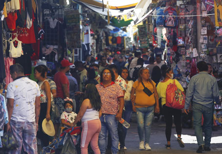 ▲ Pese a que la Ciudad de México se mantiene como la entidad con mayor número de contagios en el país, la popular localidad estuvo ayer abarrotada de compradores, sin que se siguieran las medidas sanitarias ni se evitaran las aglomeraciones. Foto Víctor Camacho