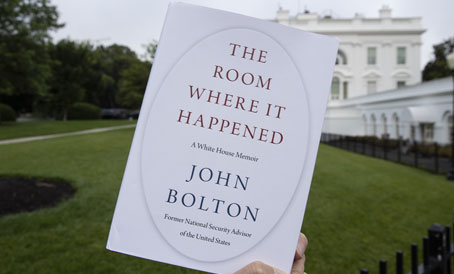 ▲ John Bolton, el ex asesor de Seguridad Nacional del gobierno de Donald Trump, detalla en su libro los 17 meses que estuvo en la Casa Blanca (en la imagen, al fondo). El texto, del cual obtuvo una copia La Jornada, se pondrá a la venta este martes. El ex funcionario ventila la errática, explosiva y desinformada personalidad del mandatario en materia de estrategia exterior. Foto Ap