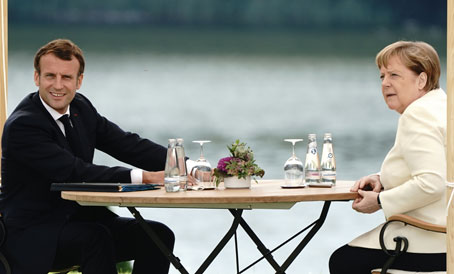 ▲ La canciller alemana recibió al mandatario francés en el palacio de Meseberg, cerca de Berlín, en vísperas de que la nación germana asuma la presidencia rotatoria de la Unión Europea.