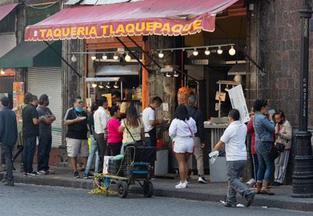 ▲ En el primer día del semáforo naranja en la Ciudad de México varios negocios reabrieron sin seguir de manera estricta las medidas sanitarias para evitar la propagación del coronavirus, como ocurrió en este negocio de la calle Isabel La Católica. En otras zonas de la urbe algunos locales sólo ofrecieron gel antibacterial, mientras en otros se pedía sana distancia. Foto Pablo Ramos. Sandra Hernández