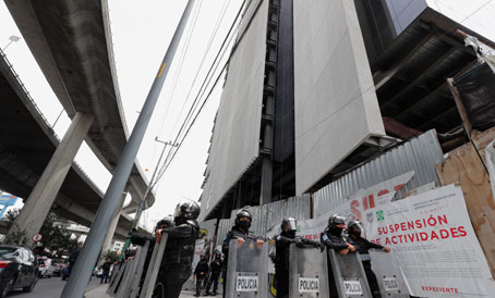 ▲ El Instituto de Verificación Administrativa repuso los sellos de suspensión de actividades en el inmueble de 15 pisos ubicado en Periférico Sur 3042, alcaldía Álvaro Obregón, el cual está sujeto a un juicio de lesividad promovido por la Seduvi; la constructora también enfrenta dos amparos de vecinos y una denuncia penal. La medida se aplicó al continuar la obra, pese a que se ordenó detenerla por invadir áreas de valor ambiental, entre otras anomalías. Foto Roberto García Ortiz. Rocío González y Bertha Teresa Ramírez