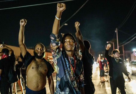 ▲ Cientos de manifestantes contra el racismo marcharon de manera pacífica en Kenosha, Wisconsin, para recordar a las dos personas que fueron abatidas el pasado miércoles durante una jornada de protesta por la brutalidad policiaca contra el afroestadunidense Jacob Blake, quien fue tiroteado por la espalda. En esta nueva movilización se ignoró el toque de queda decretado por autoridades. Foto Afp