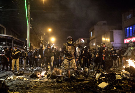 ▲ Bogotá y sus alrededores fueron escenario anoche de nuevos enfrentamientos entre manifestantes y agentes, luego de que el miércoles murieron 10 personas, casi 400 resultaron heridas y unas 60 instalaciones policiales fueron atacadas tras el asesinato del abogado Javier Ordóñez por dos uniformados que le aplicaron numerosas descargas eléctricas. Foto Ap. Agencias