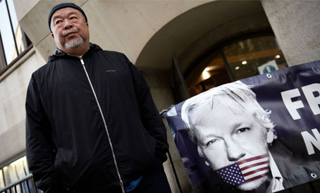▲ El afamado artista contemporáneo Ai Weiwei realizó ayer una protesta silenciosa fuera de la corte penal, en el centro de Londres, contra la posible extradición a Estados Unidos del fundador de WikiLeaks, quien enfrenta 17 cargos de espionaje y por divulgar documentos militares secretos hace una década. El también activista dijo que las autoridades tienen que proteger la libertad de prensa: está preparado para luchar, pero no es justo para él. Las imputaciones implican una sentencia máxima de 175 años. Foto Afp. Agencias