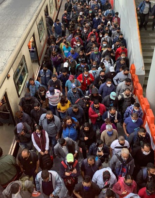 ▲ Aunque se estabilizó el aumento de hospitalizaciones por Covid en los últimos tres días, la capital del país no está en condiciones de abrir nuevas actividades, informó la jefa de Gobierno, Claudia Sheinbaum. Pidió a la población no realizar reuniones de más de 10 personas y mantener higiene y sana distancia. Imagen de ayer en el Metro. Foto José A. López / Rocío González Alvarado