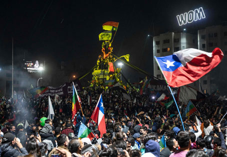 ▲ Multitudes se reunieron en la Plaza Dignidad de Santiago, así como en decenas de ciudades, luego de conocerse los resultados que favorecen la redacción de una nueva Constitución. El grueso de los sectores de derecha se inclinaban por el
