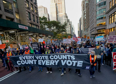 cada voto cuenta, simpatizantes del candidato demócrata Joe Biden marcharon por la Quinta Avenida para exigir revisión pulcra de sufragios en los comicios presidenciales, que impidan a Donald Trump